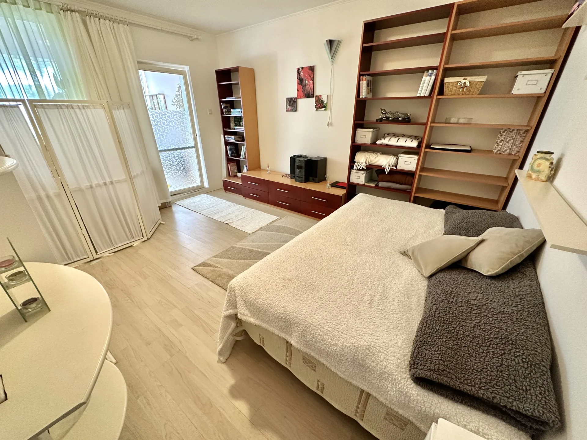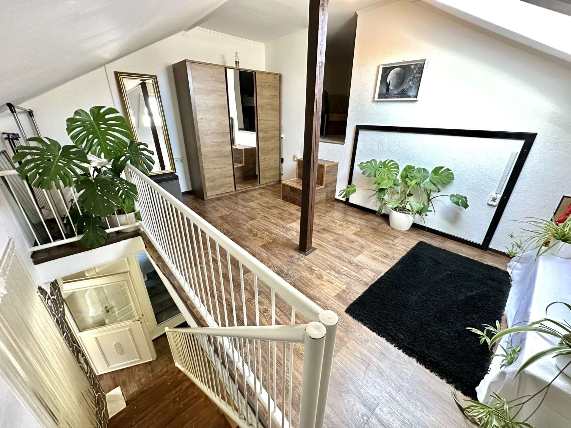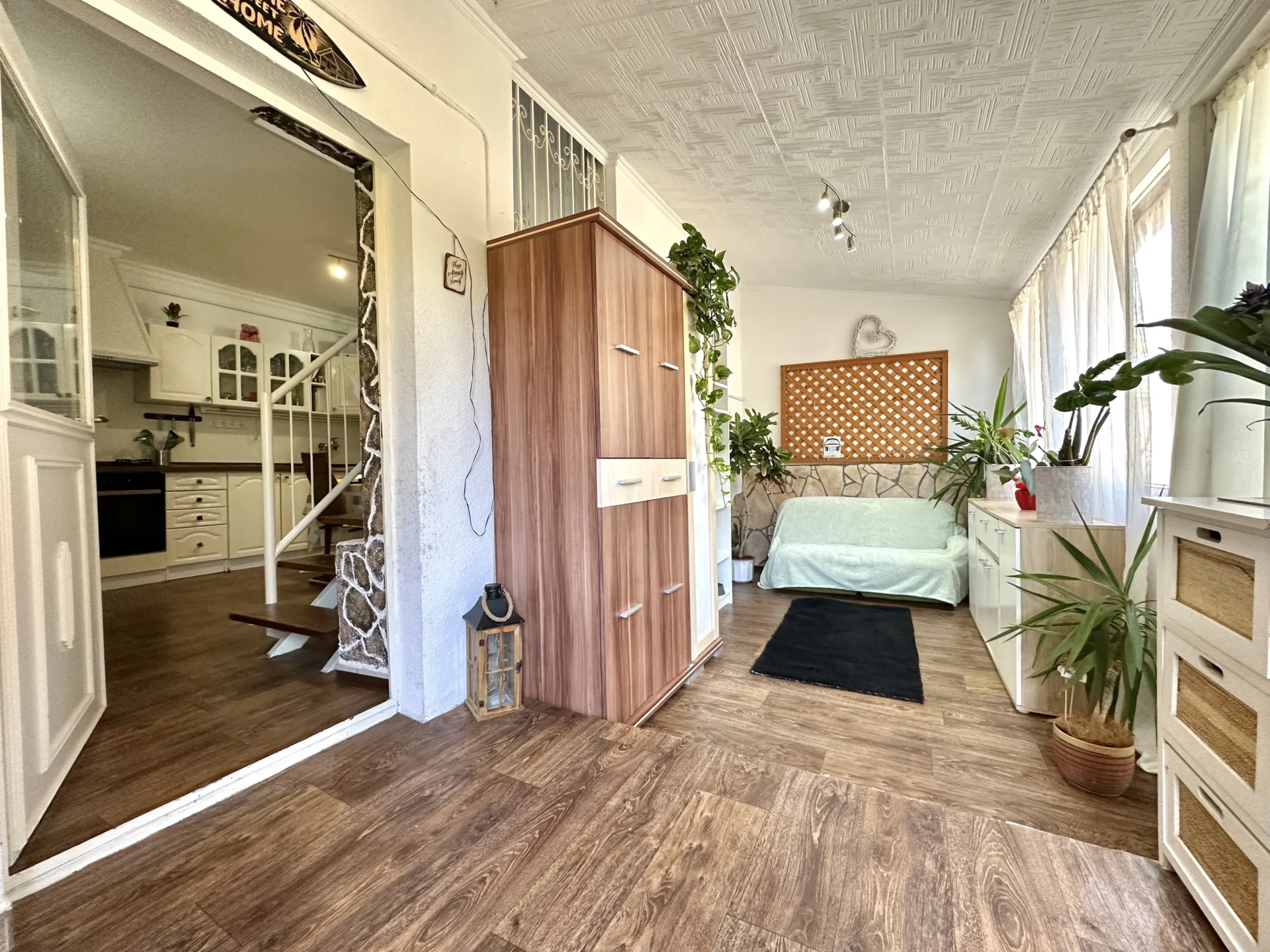 The third part of the apartment consists of an air-conditioned bedroom with a walk-in closet, a kitchen, a bathroom with a shower, above which there is a spacious gallery, which can also function as a bedroom. The winter garden (approx. 13 square meters) could not be left out here either. It is heated by a gas convector and hot water by an electric boiler.