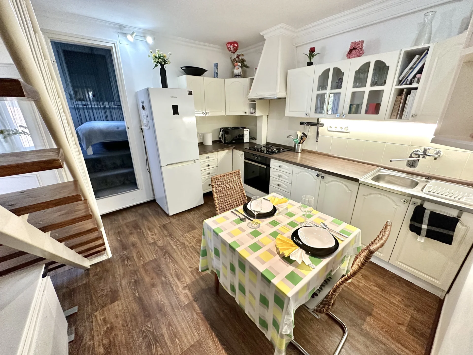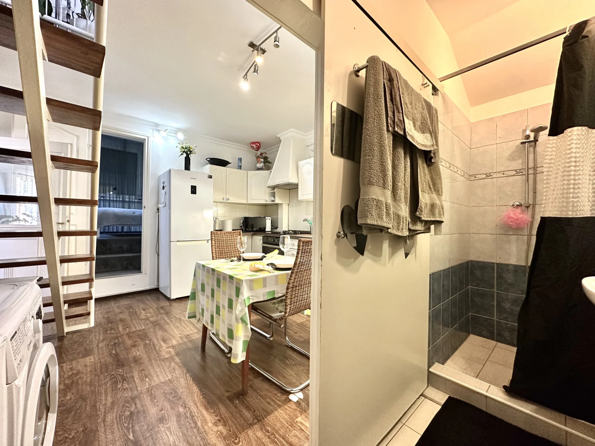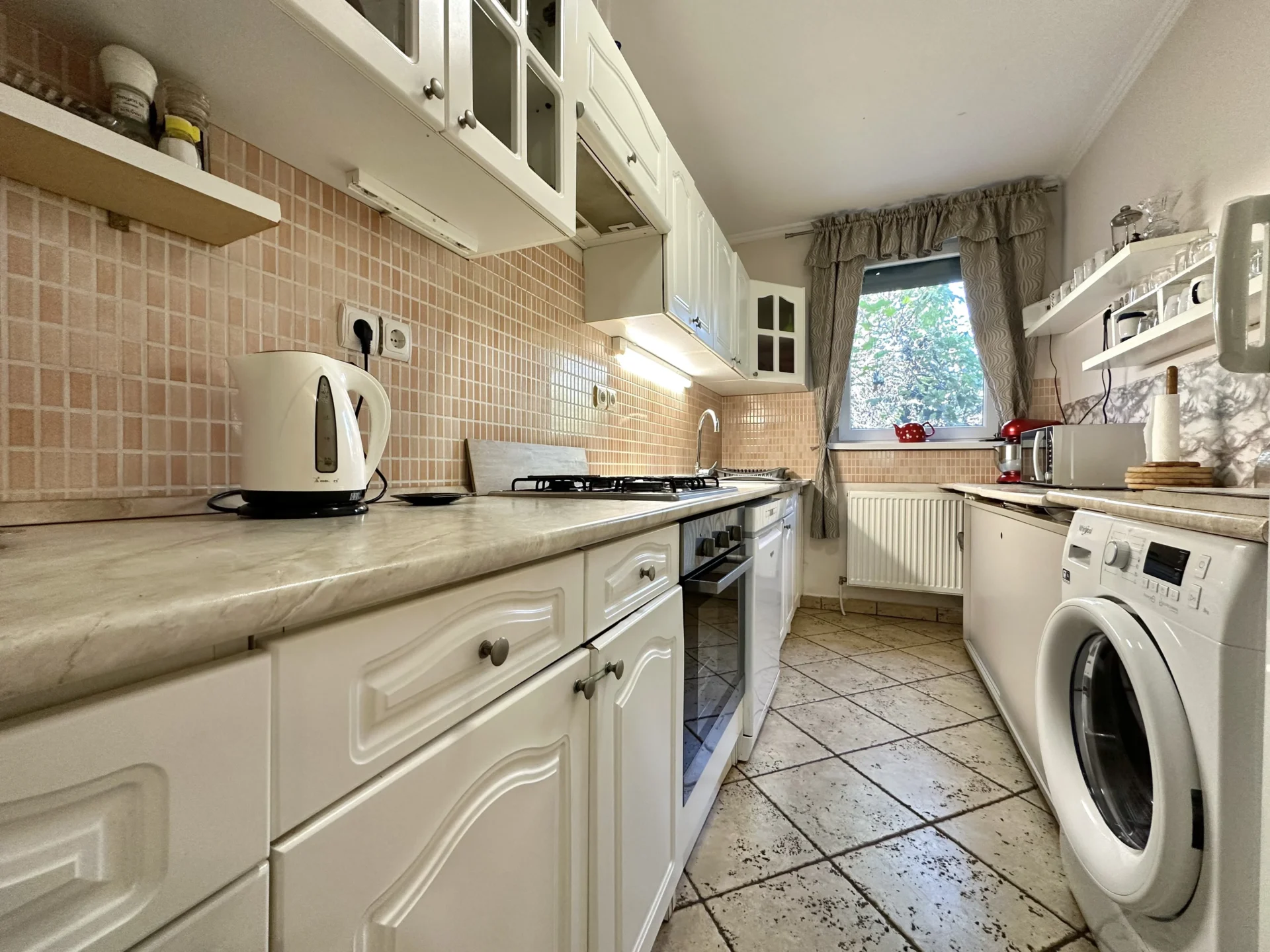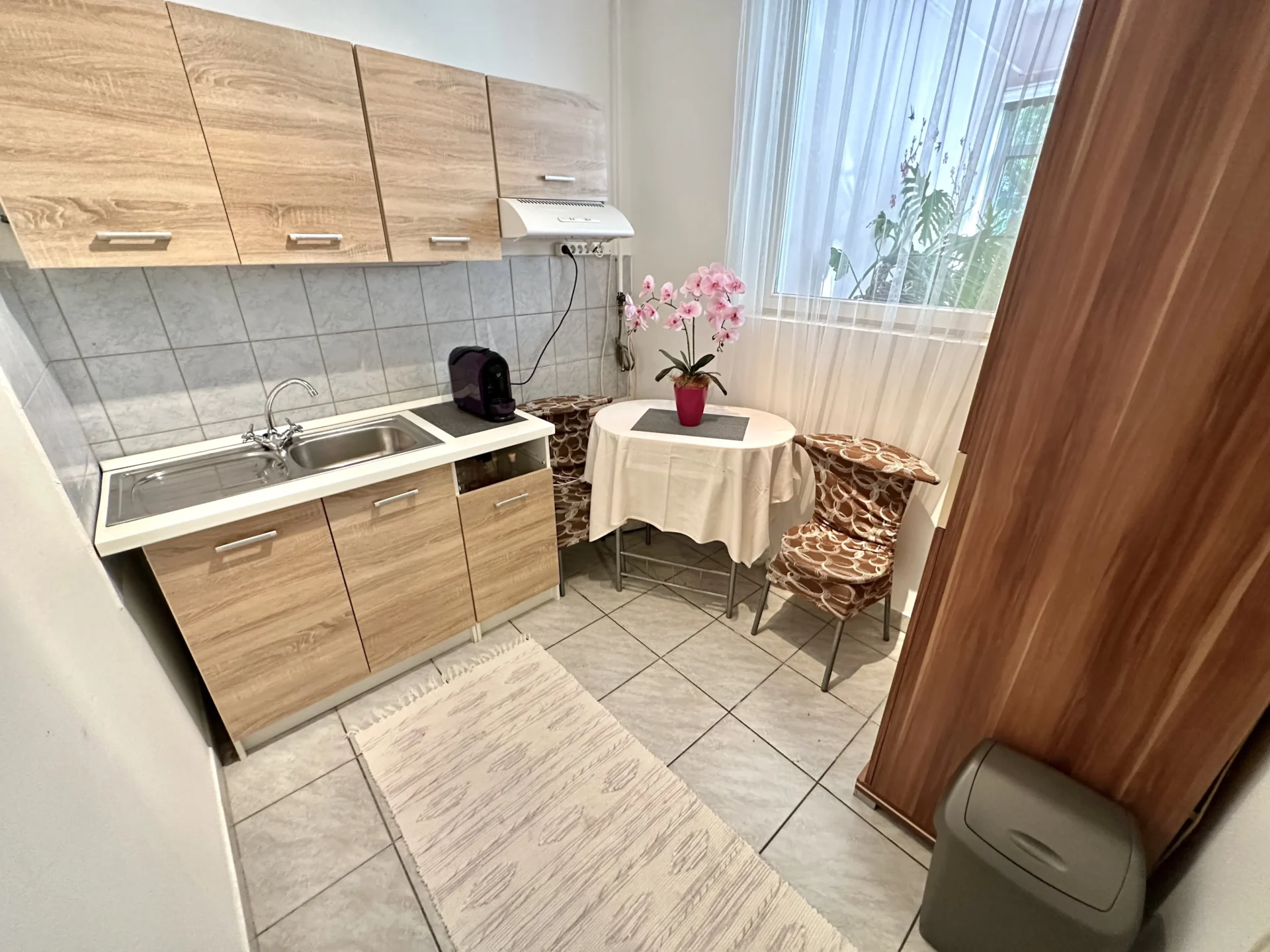 The third part of the apartment consists of an air-conditioned bedroom with a walk-in closet, a kitchen, a bathroom with a shower, above which there is a spacious gallery, which can also function as a bedroom. The winter garden (approx. 13 square meters) could not be left out here either. It is heated by a gas convector and hot water by an electric boiler.