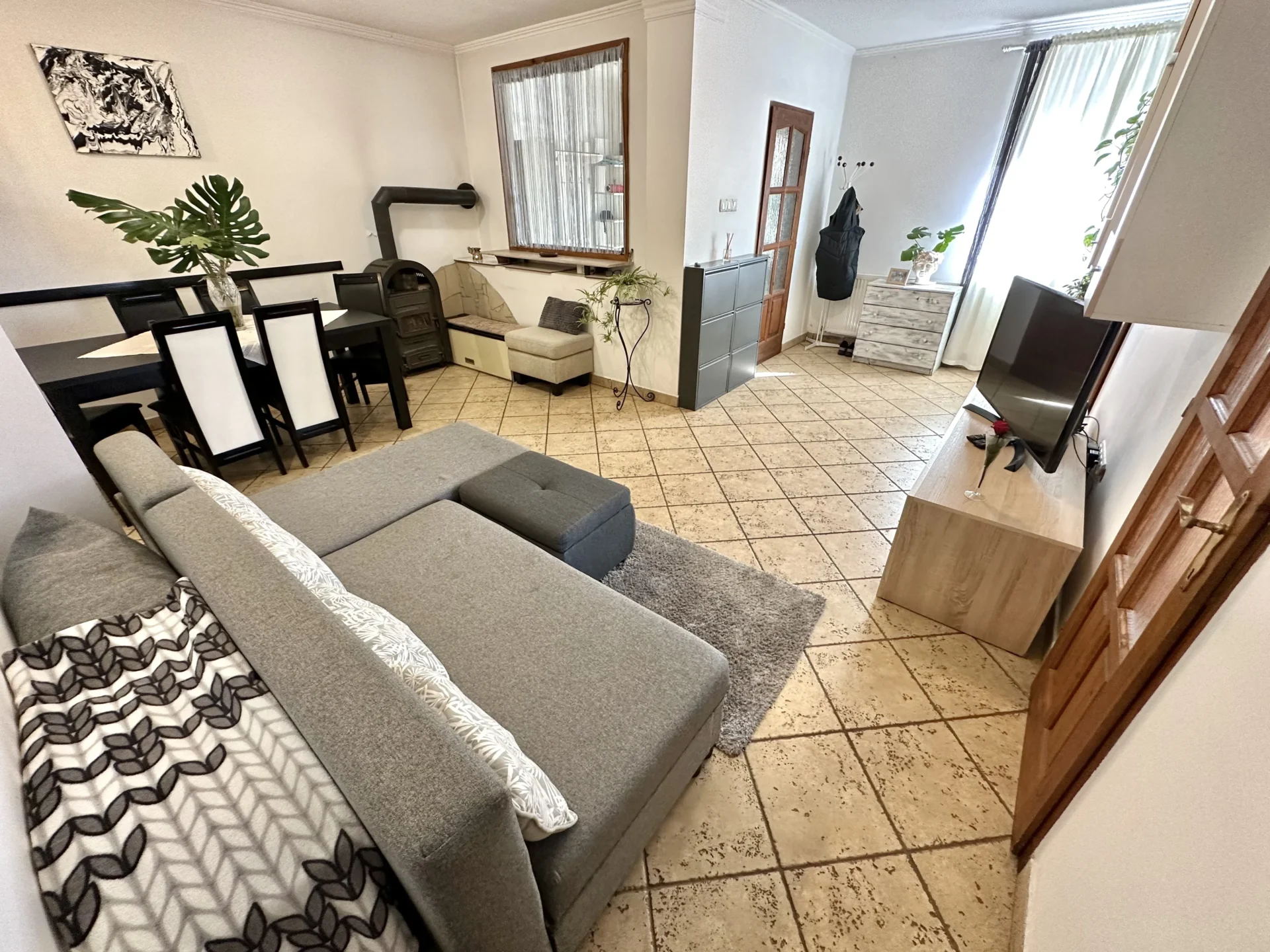 A vastag falaknak és az ingatlan fekvésének köszönhetően egész nyáron hűvös van a házban, télen pedig jól tartja a meleget.
