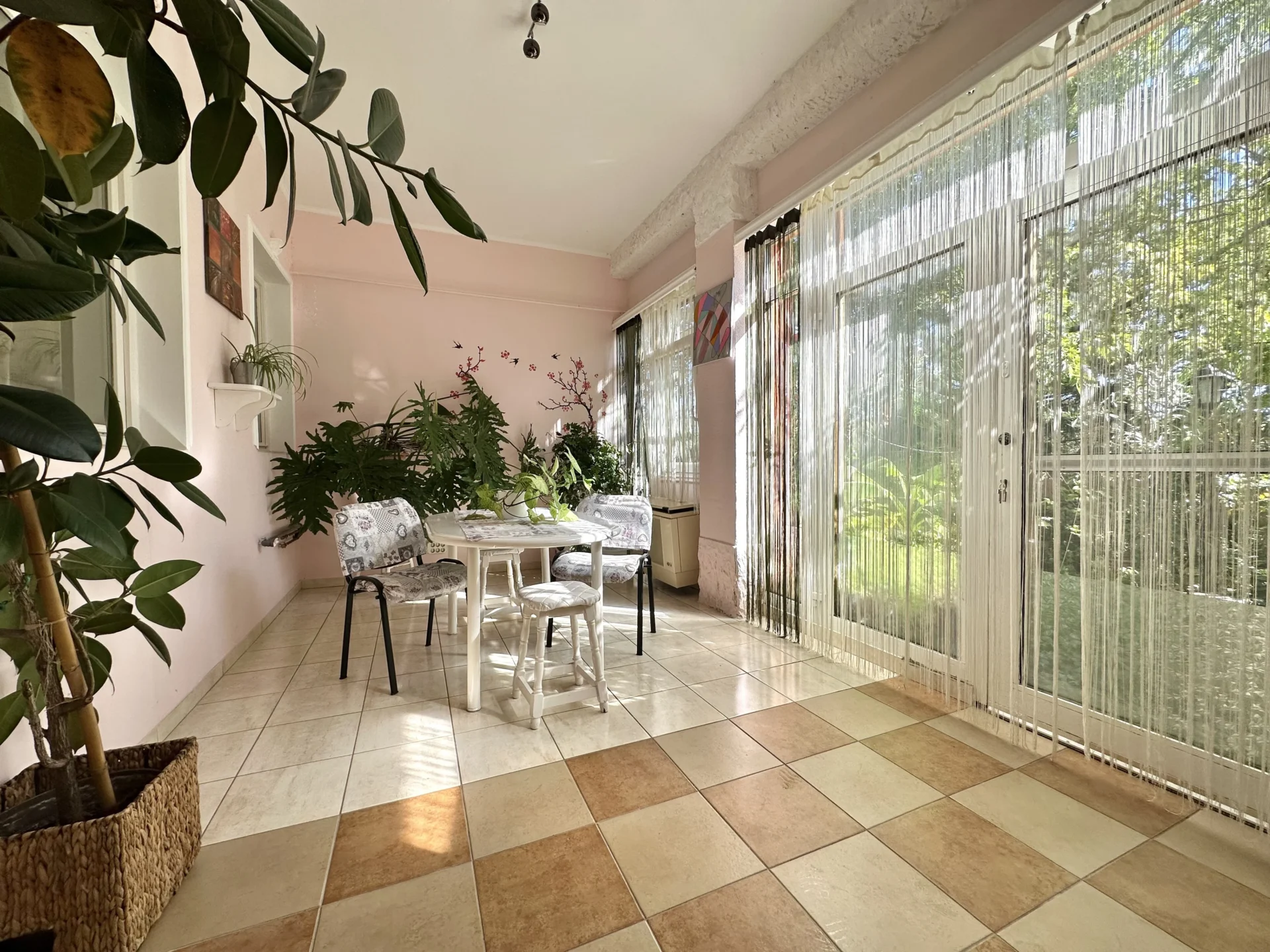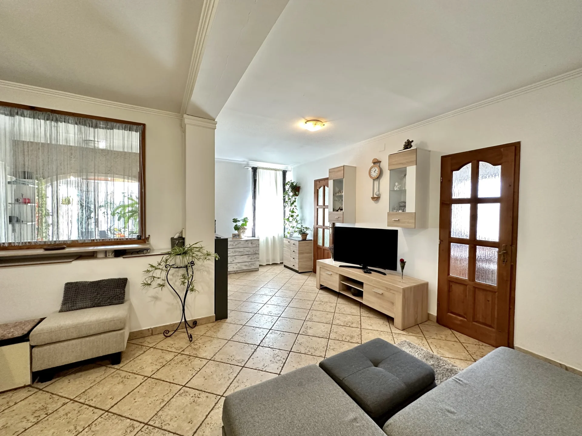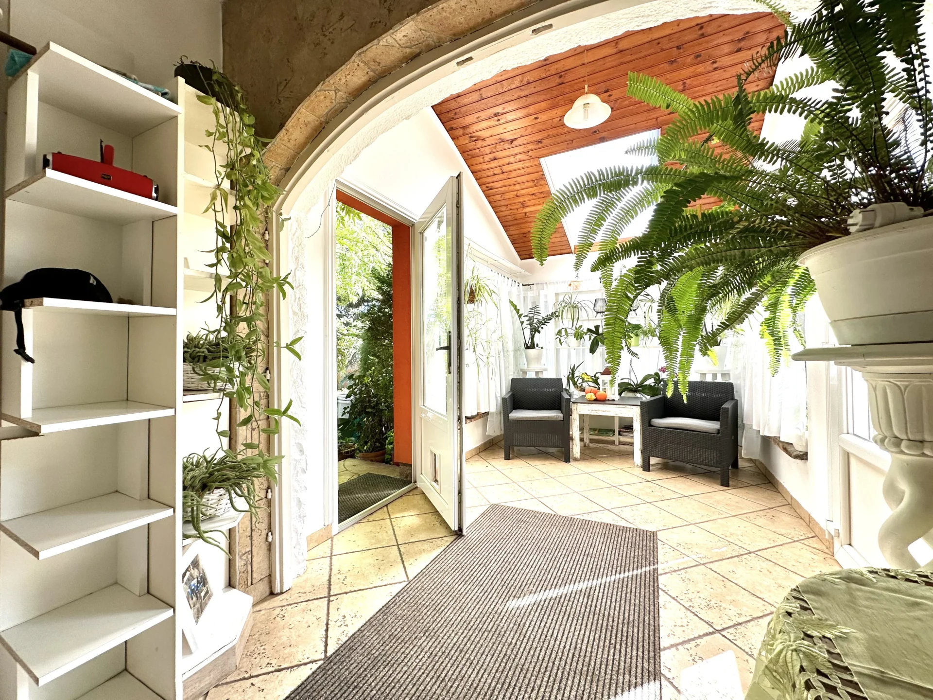 The house is located on a plot of 3,135 square meters, which is only bordered on one side by a neighbor. On the other sides, there are wooded areas, fruit trees and walk-in plastic tunnels for vegetables. The useful floor area of the house is approx. 137 sqm, which includes 3 units, with a total of approx. 40 sqm winter garden.