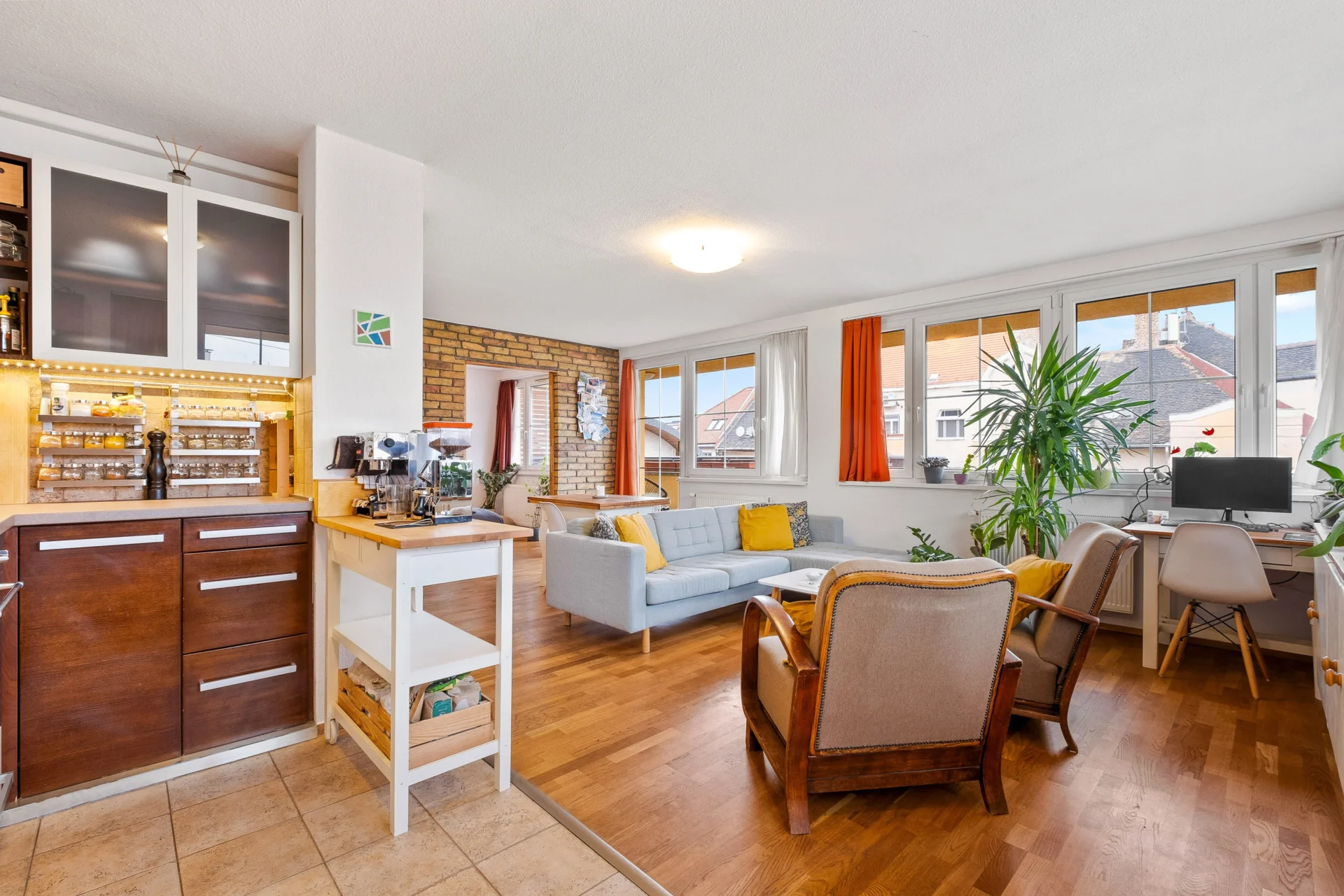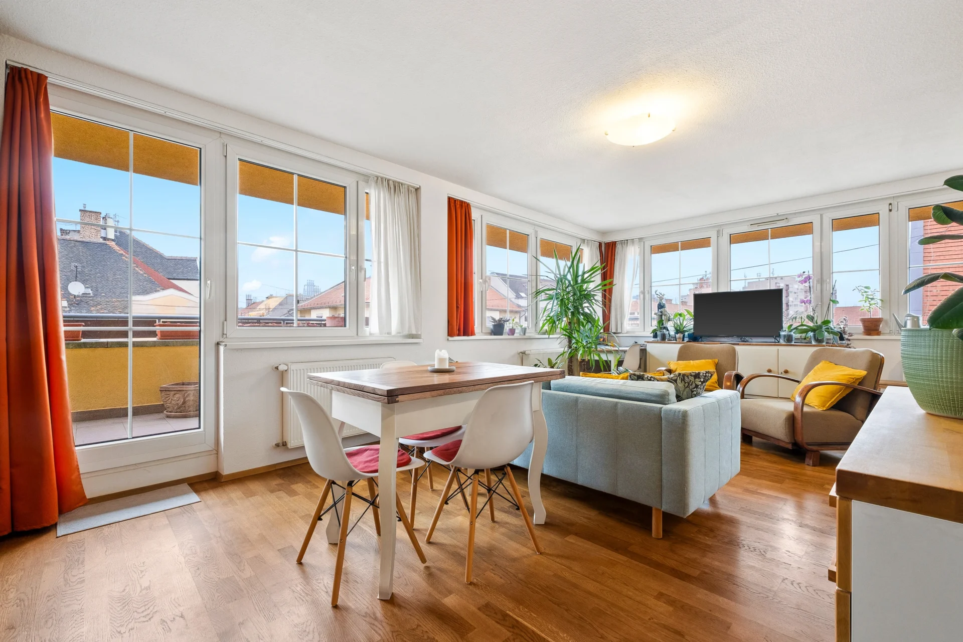 Terasz (13 m²) – A terasz a lakás két helyiségéből is megközelíthető, ideális reggeli kávézáshoz vagy esti pihenéshez, miközben élvezheti a környék hangulatát.