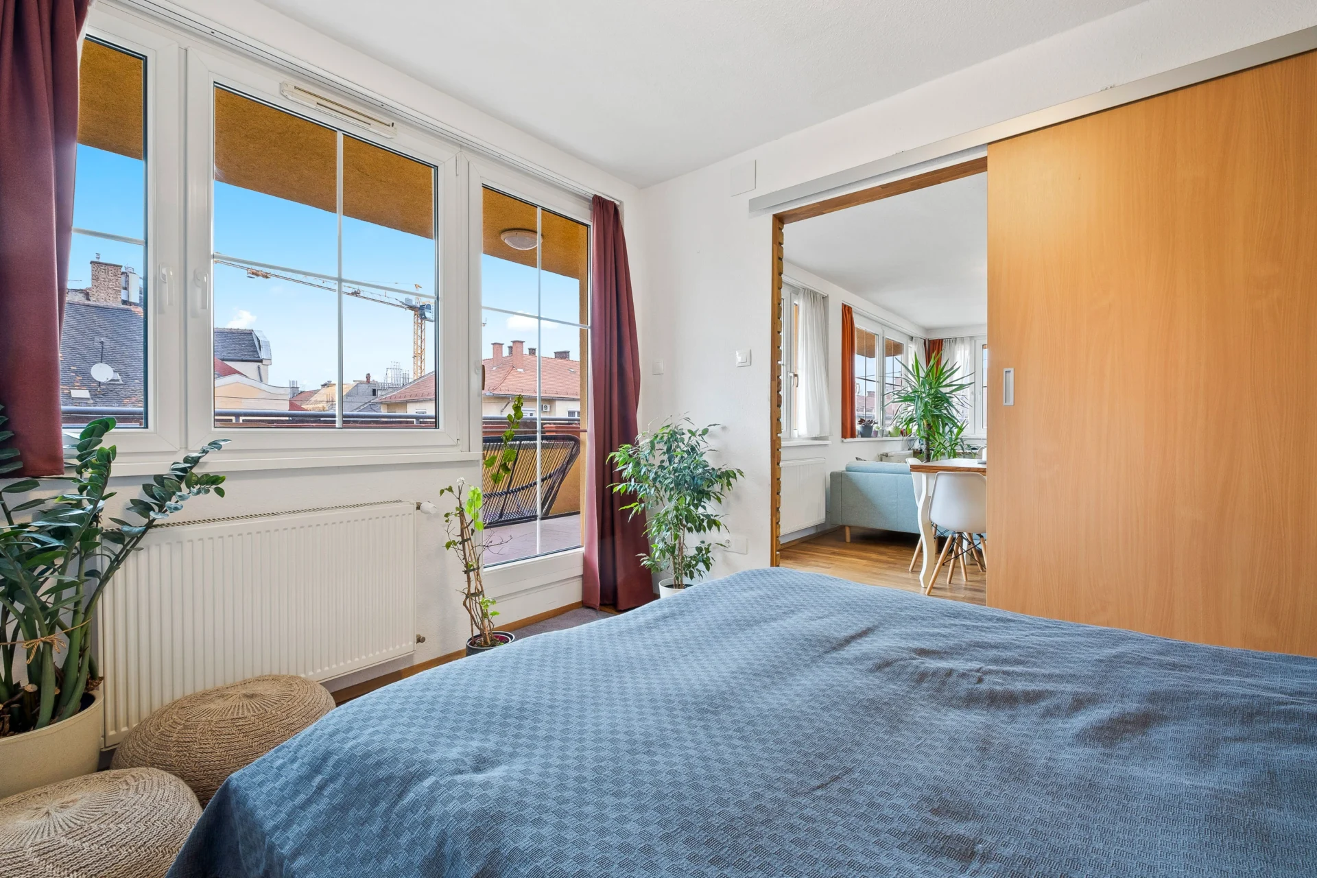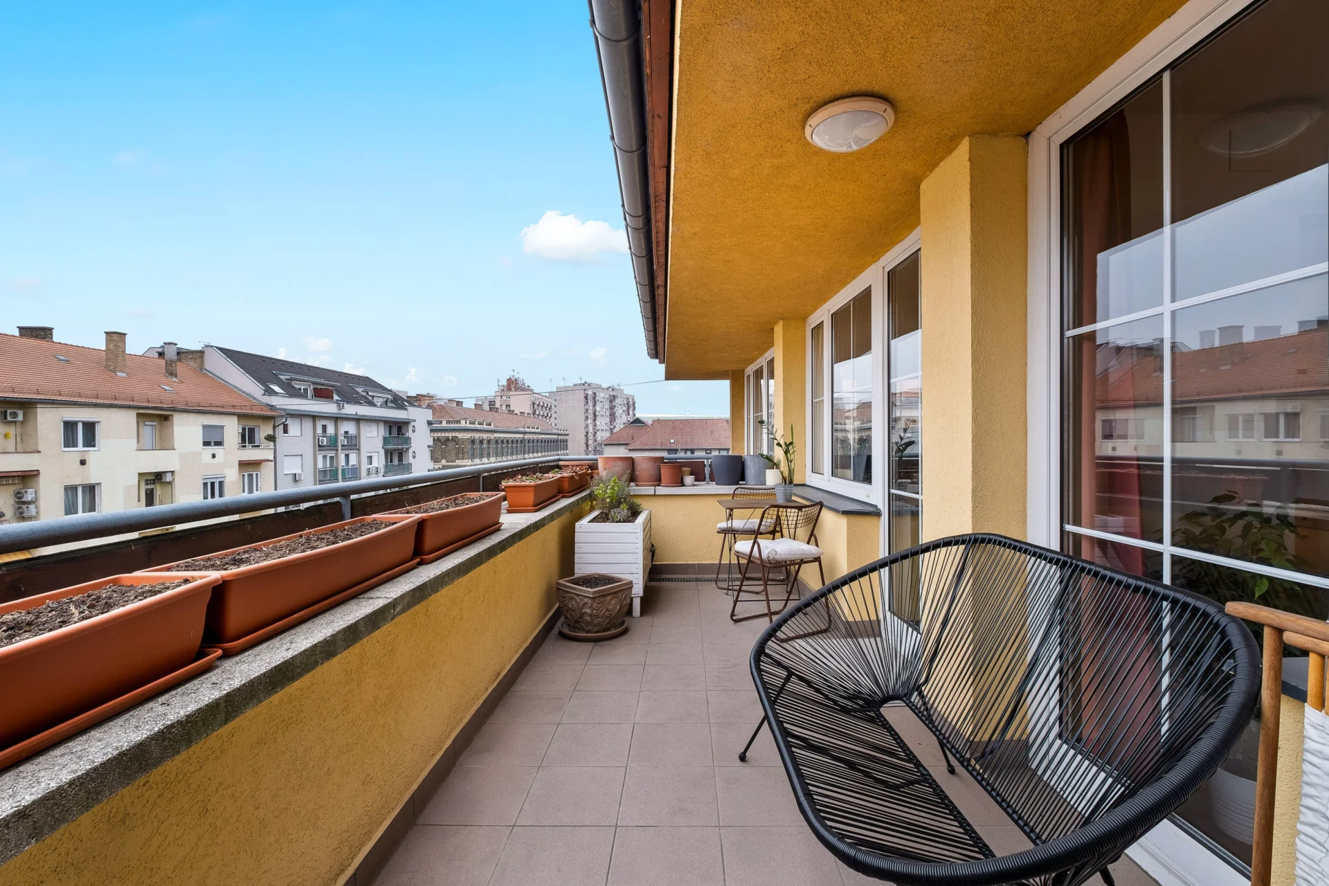 Az ingatlan egy 13 m²-es terasszal is rendelkezik, ahová mind a nappali, mind a hálószoba kijuthat.
