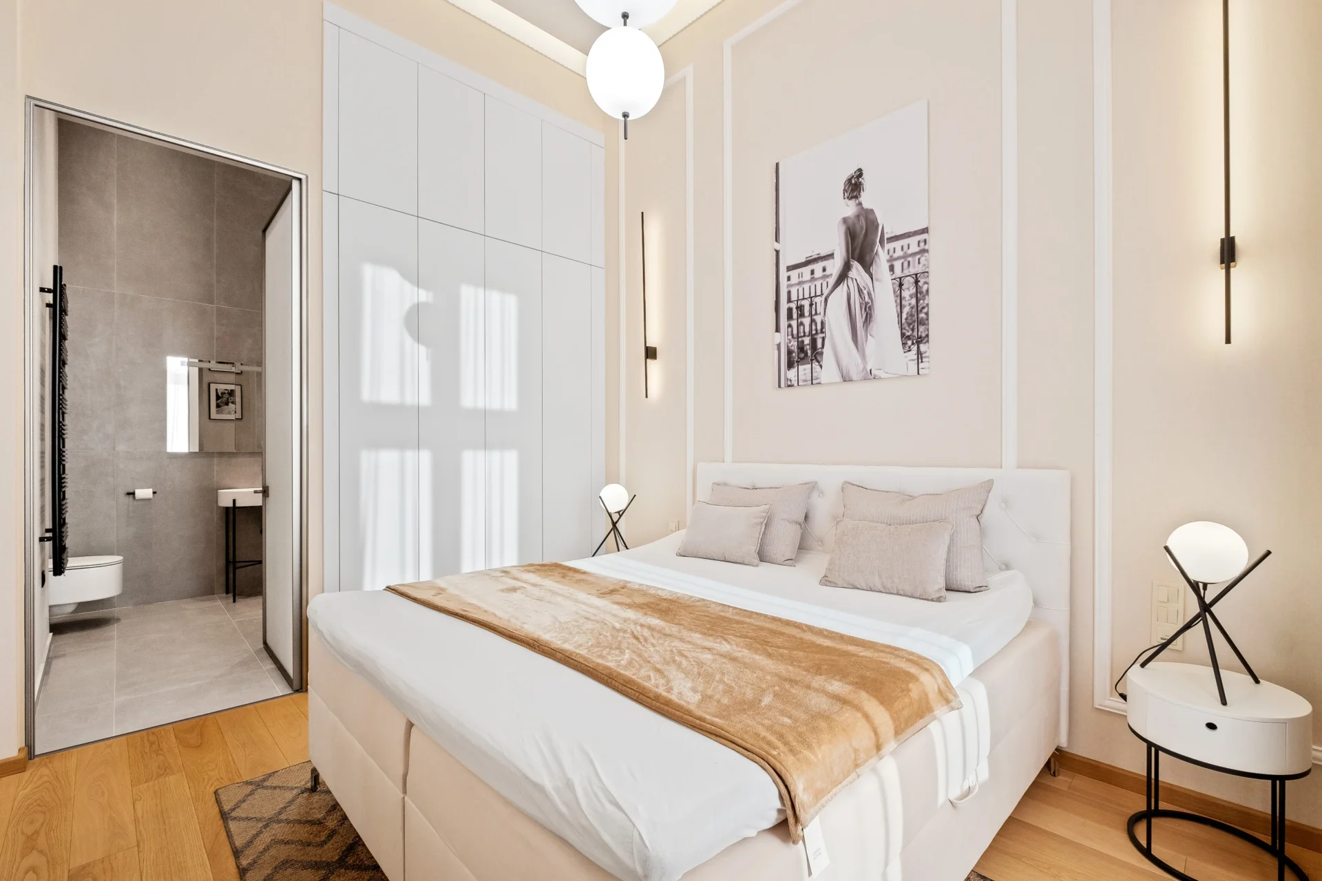 2 elegáns hálószoba, mindegyik saját fürdőszobával, a tökéletes magánélet és kényelem érdekében.