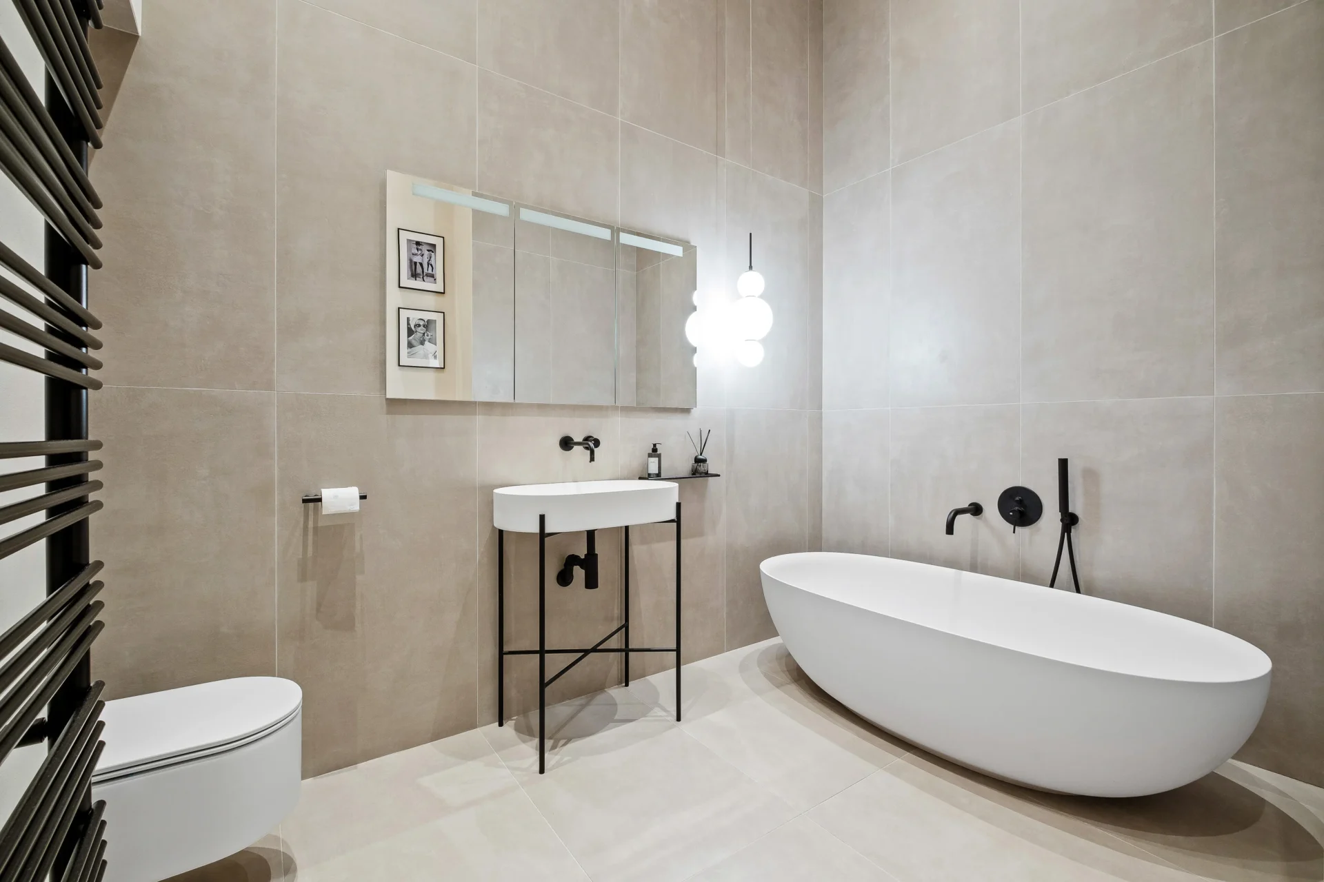 Booffi kád és gress burkolatok, valamint GESSI csaptelepek biztosítják a fürdőszobák prémium minőségét.