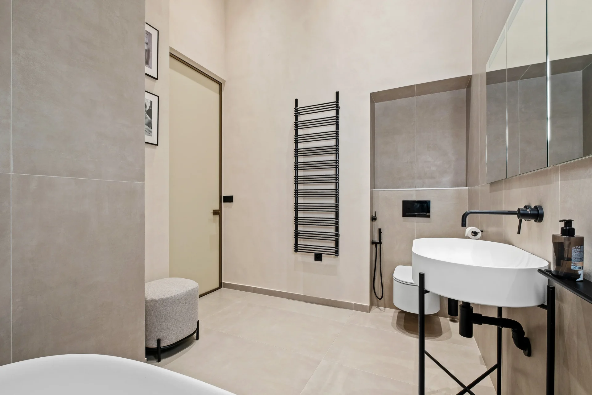 – Booffi bathtub and gress tiles, paired with GESSI faucets, add premium quality to the bathrooms.