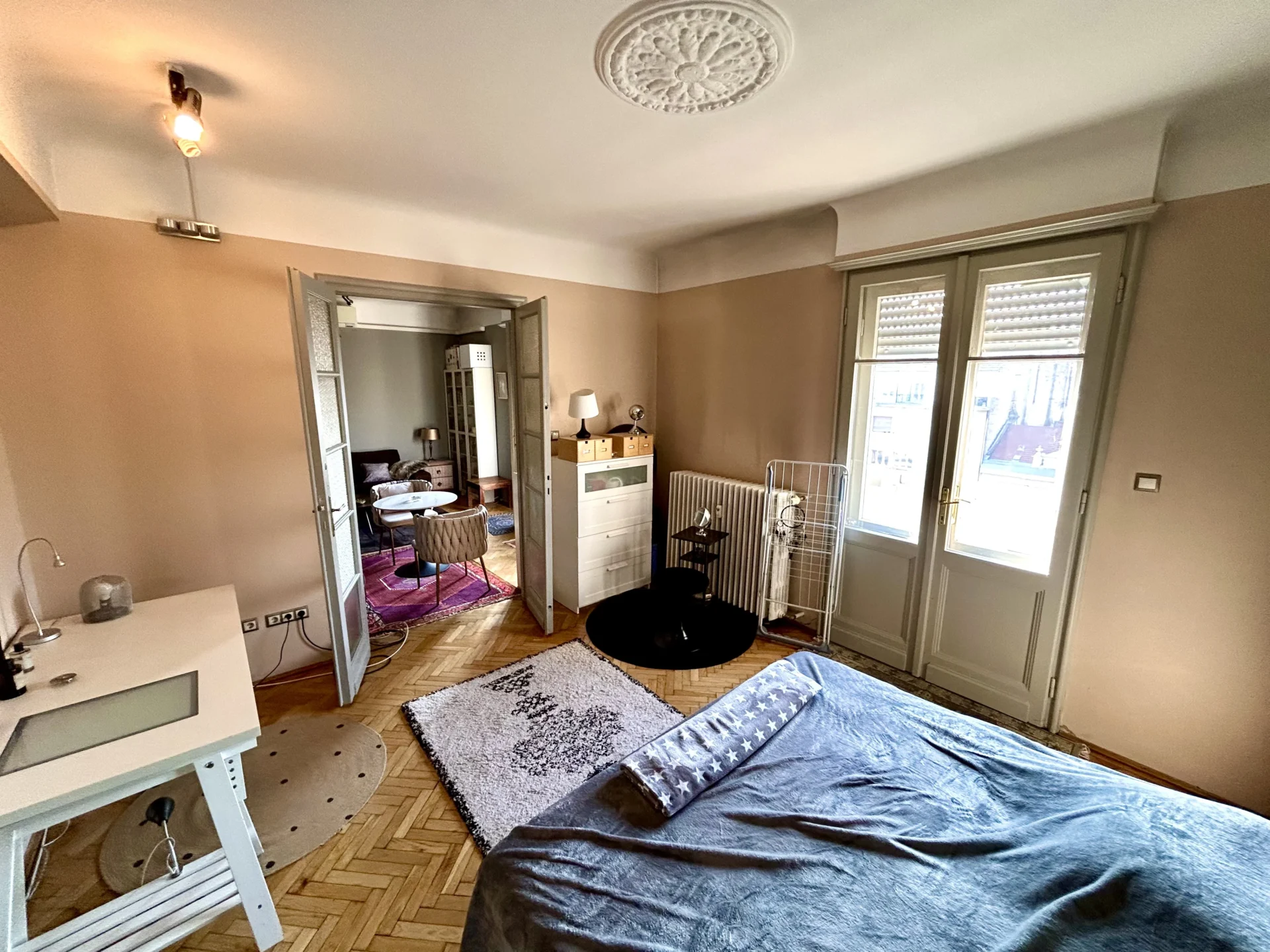 The apartment is fully furnished and equipped, with the option for certain items to be removed according to your needs. There’s a parking space in the courtyard behind the building, and street parking (paid) is also available.