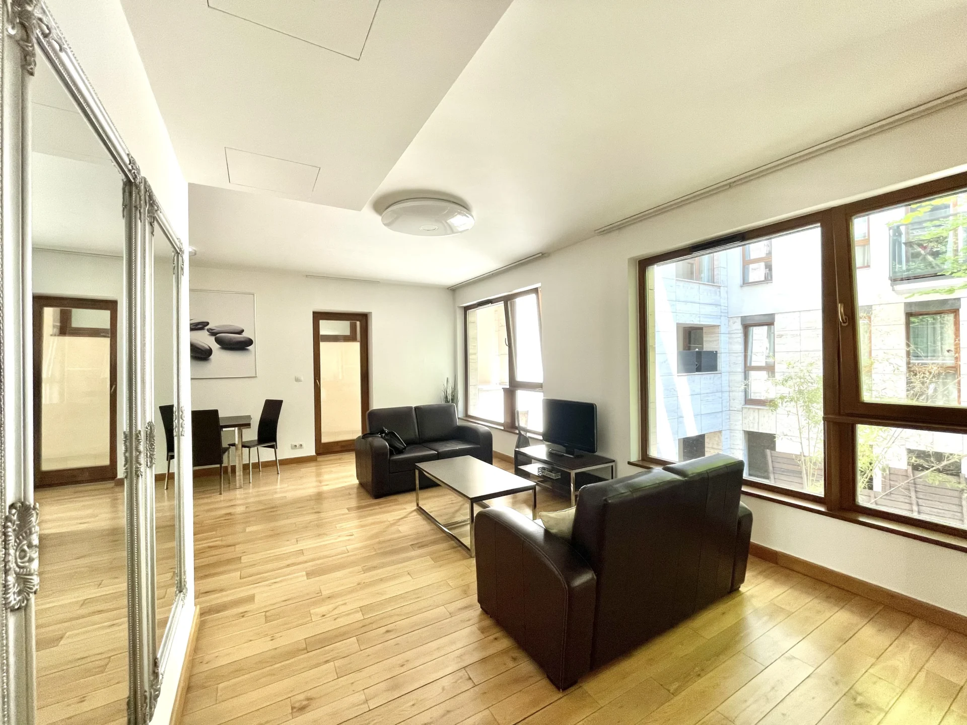 The apartment features a spacious living room and a separate bedroom.